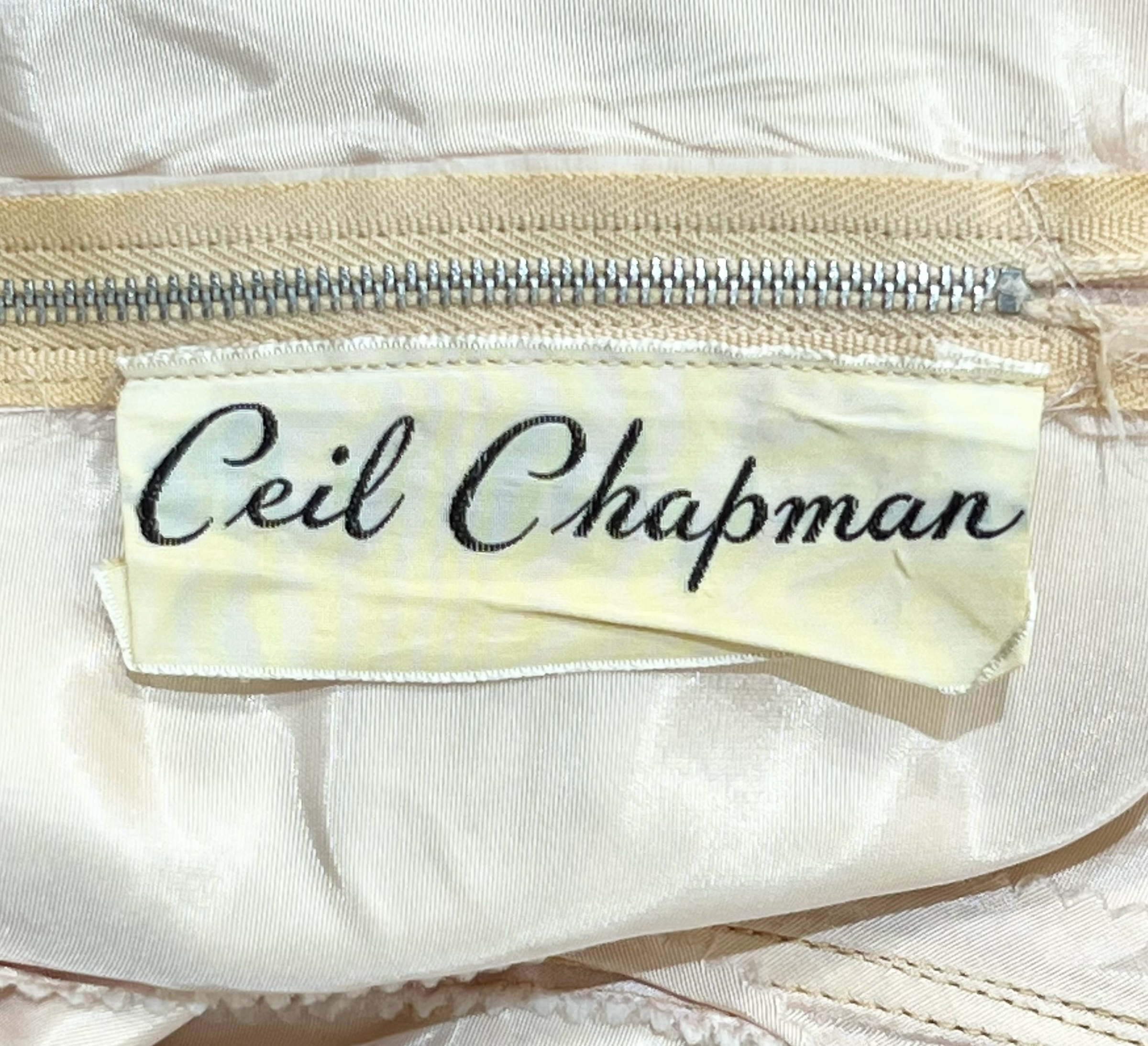 Exquisitely beautiful Ceil Chapman evening gown from the 1950's. The epitome of midcentury Hollywood glamour. A holy grail gown for any vintage darling enamored with this bygone era of true glam. Chapman's designs were favored by many starlets and socialites of the day, and was even a favorite of Marilyn Monroe.