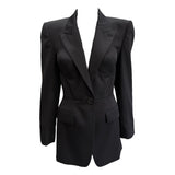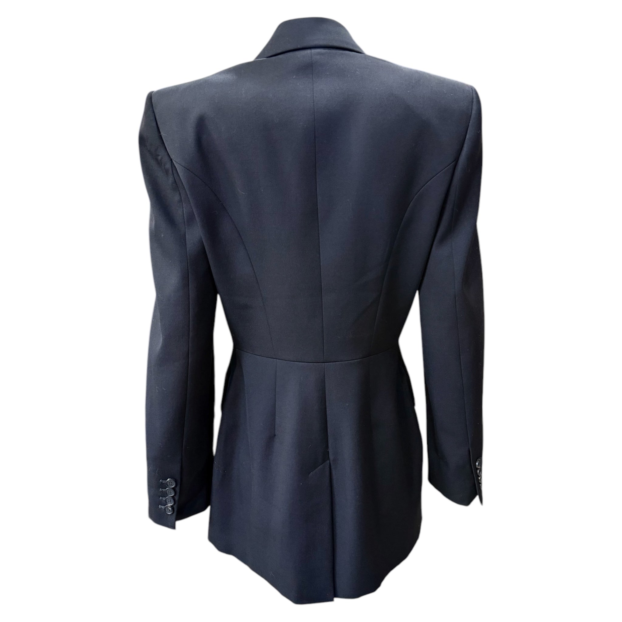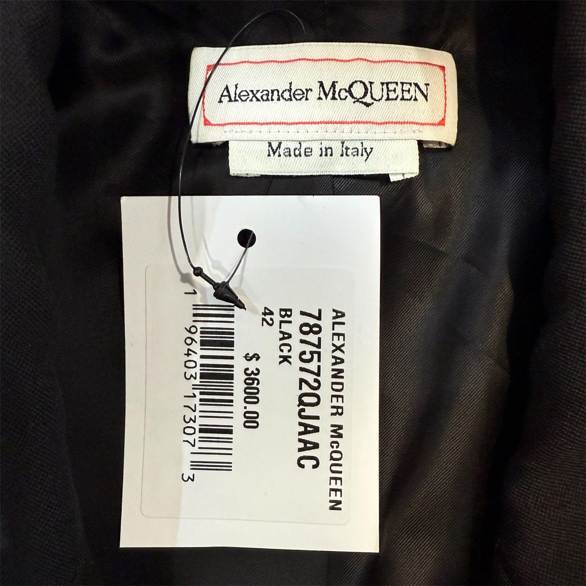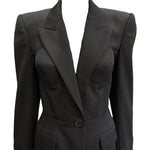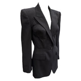 Fantastic structural black blazer with peaked lapel from Alexander McQueen, new with original hang tags. From the Winter 2023 Ready To Wear Collection. Black lightweight wool with shoulder pads. Excellent condition, never worn.