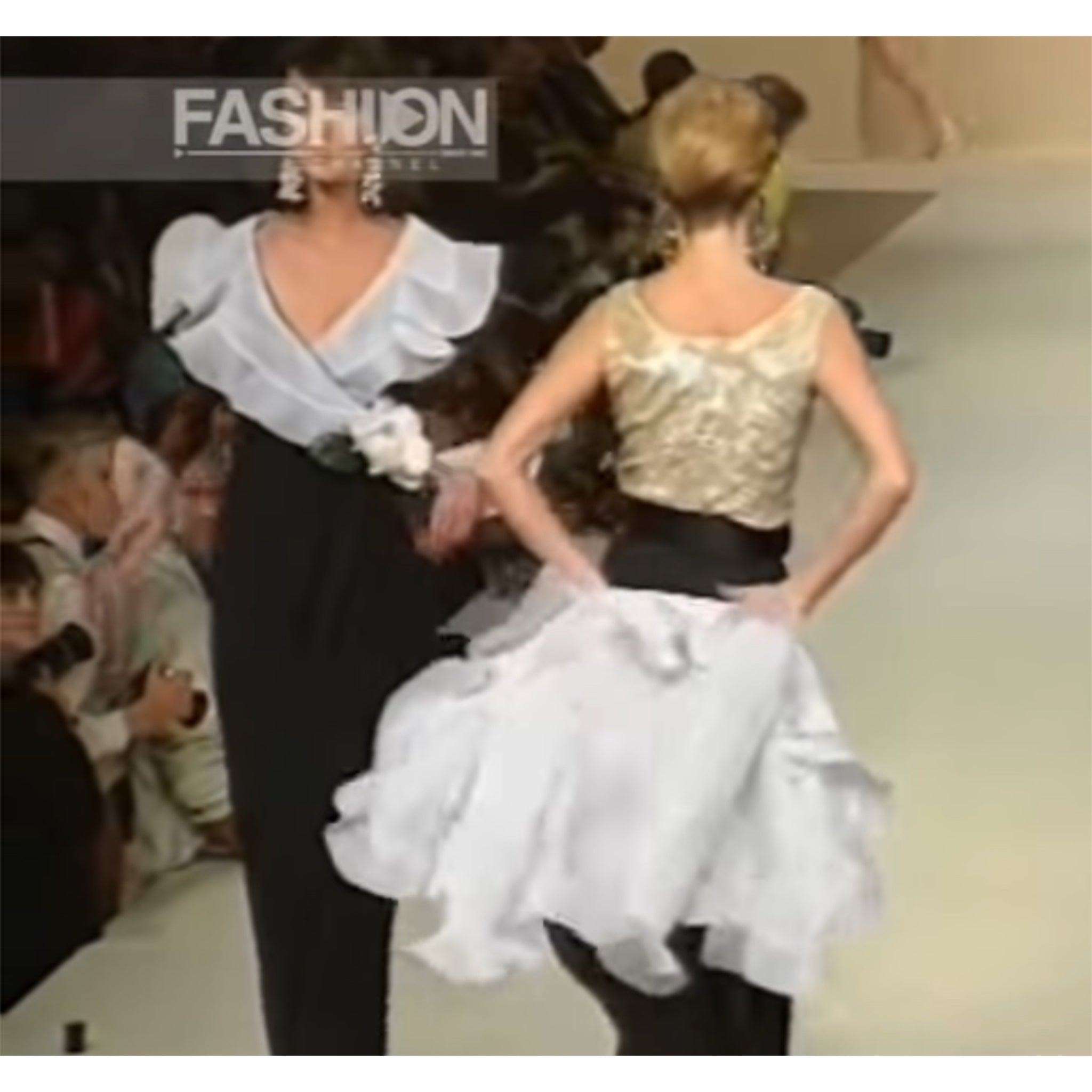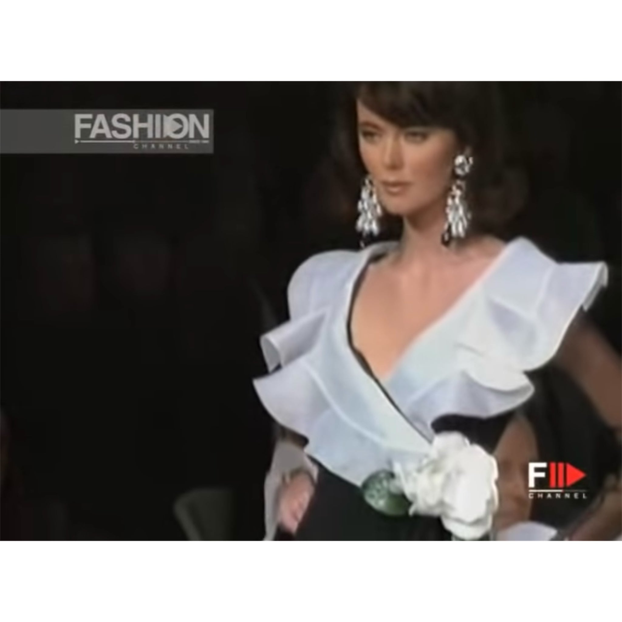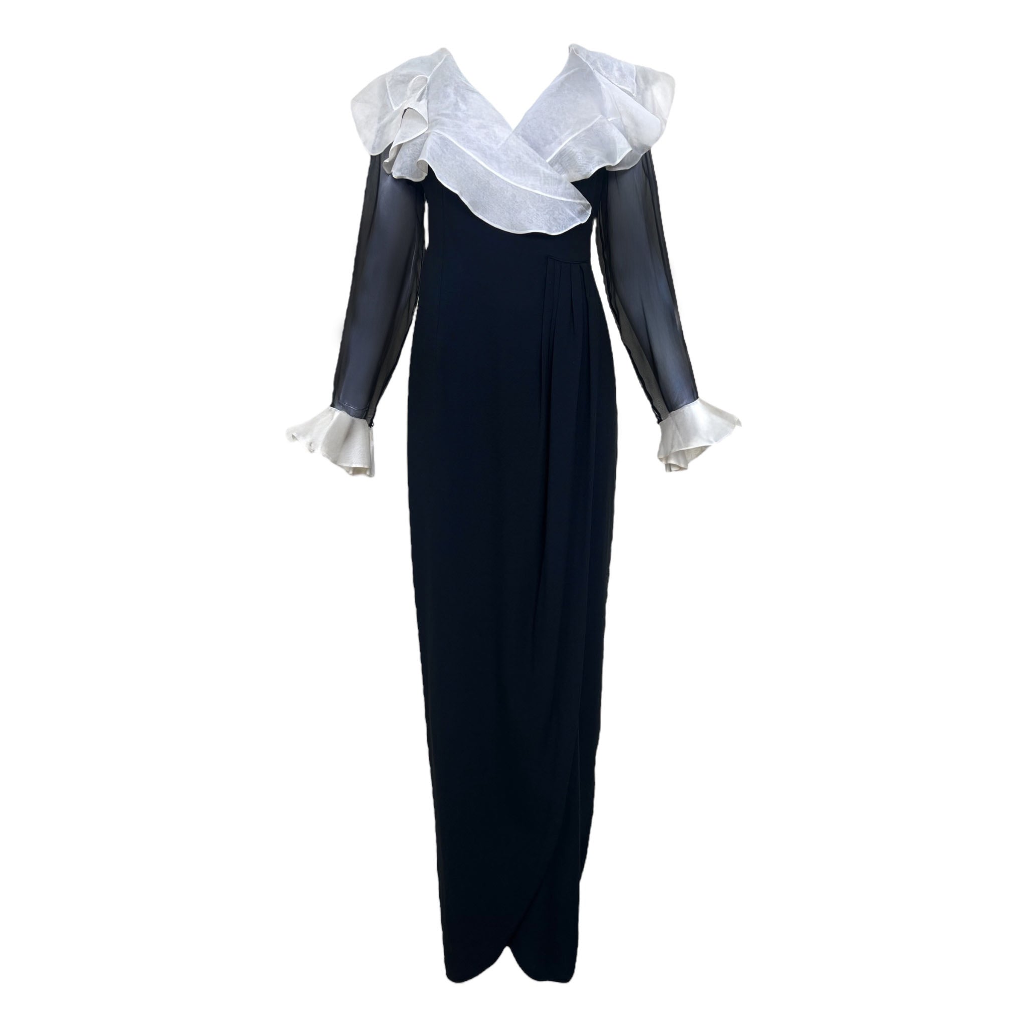 Valentino S/S 1991 Black Wrap Evening Gown with Ivory Ruffle Collar