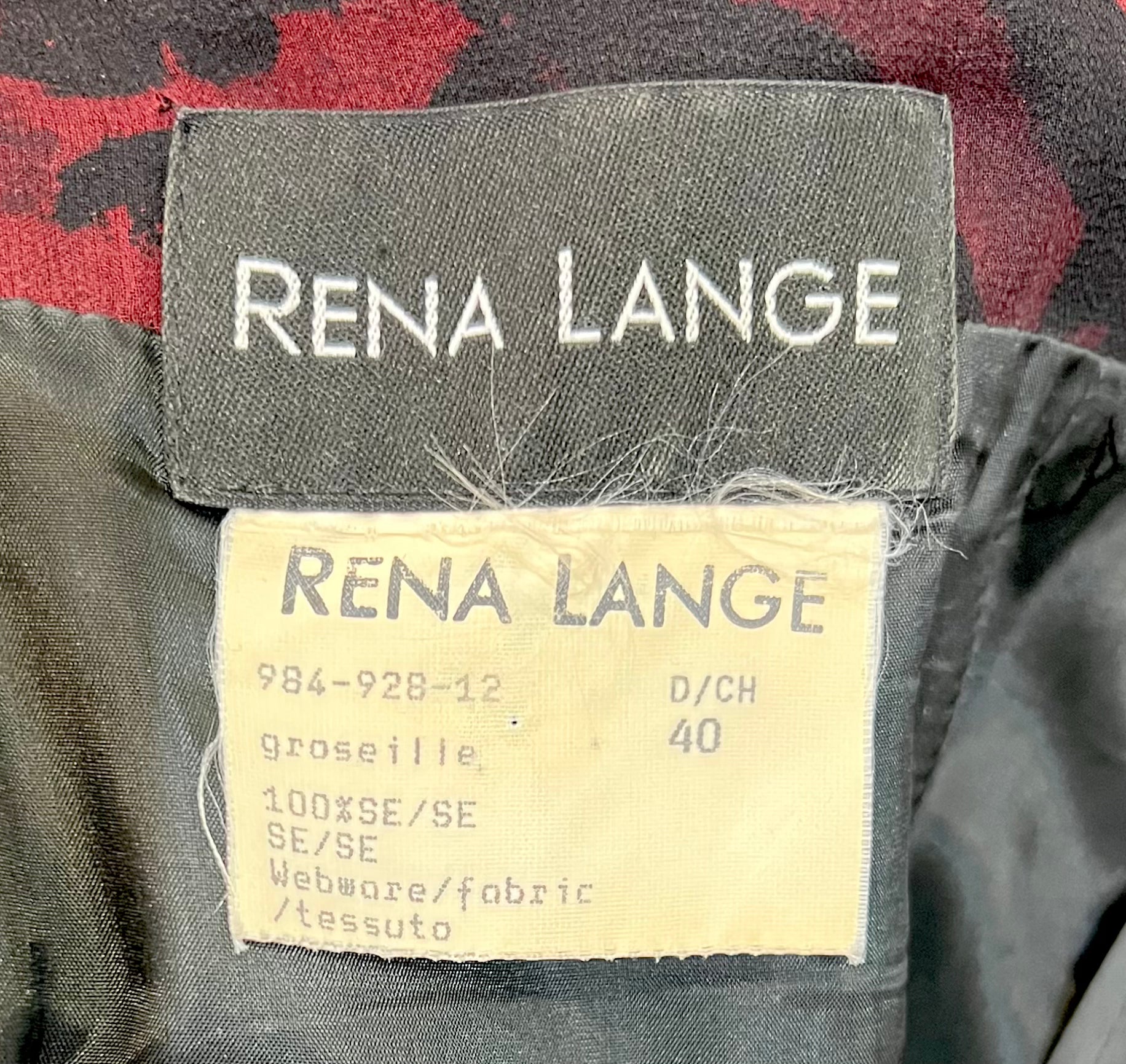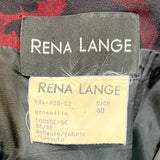 Wild and free red leopard print silk chiffon gown by Rena Lange. Beautiful leopard spots and faces printed in soft black on the deep red silk chiffon. Ruching at bodice and at off-shoulder straps. Fully lined bodice with support and boning. The skirt consists of two semi-sheer layers of printed silk chiffon with slits down the front. Zip closure down back of bodice. Excellent condition.