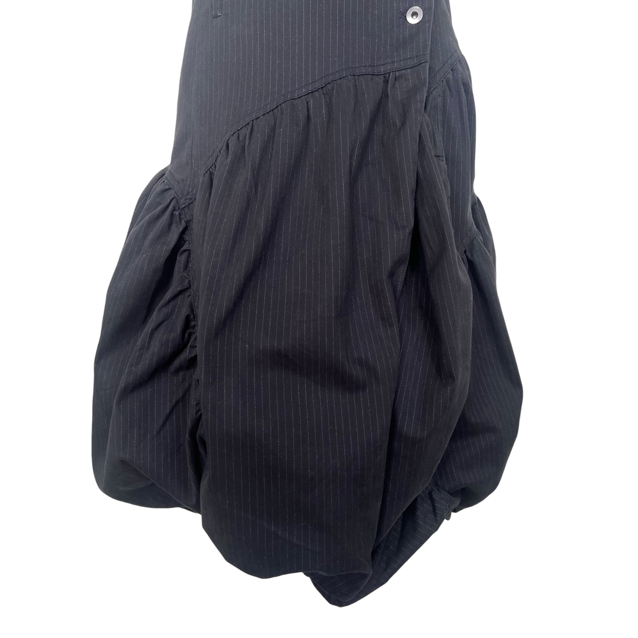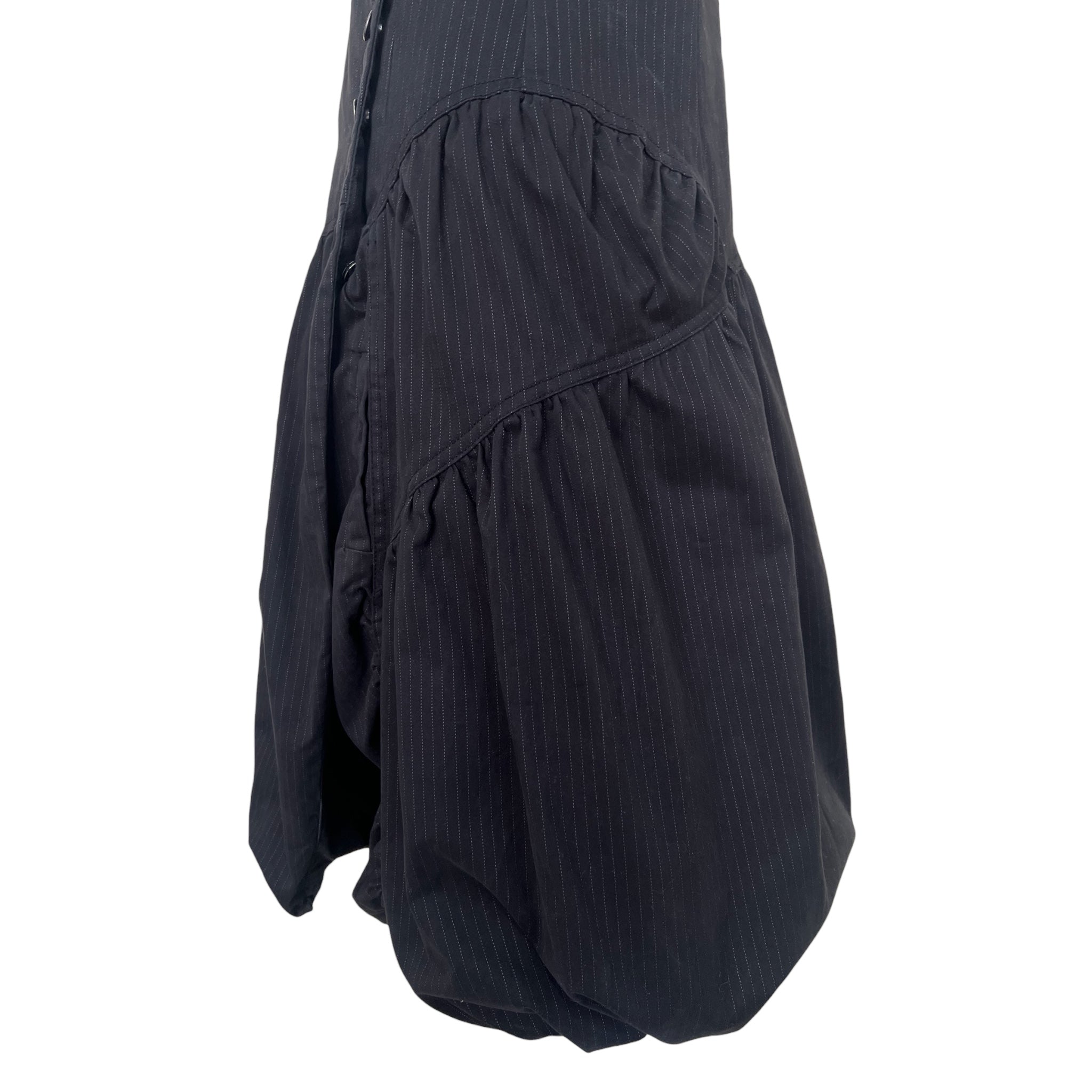 Y2K Black Pinstripe Halter Asymmetrical Bubble Hem Midi Dress