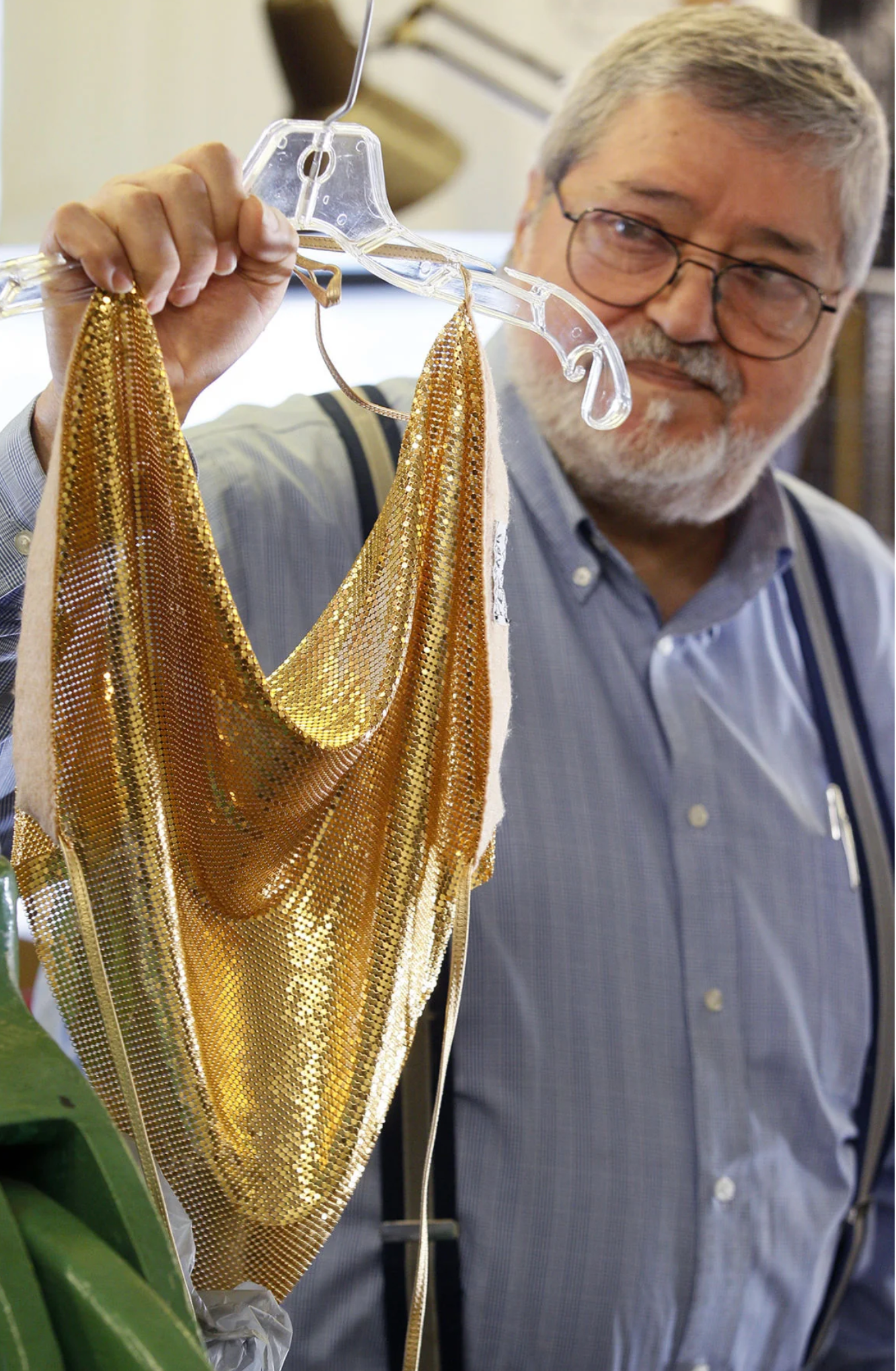 Gold plated ring mesh pointed handkerchief collar necklace from the personal archive of Anthony Ferrara. Hook closure with chain extender. Excellent condition, New With Tags.