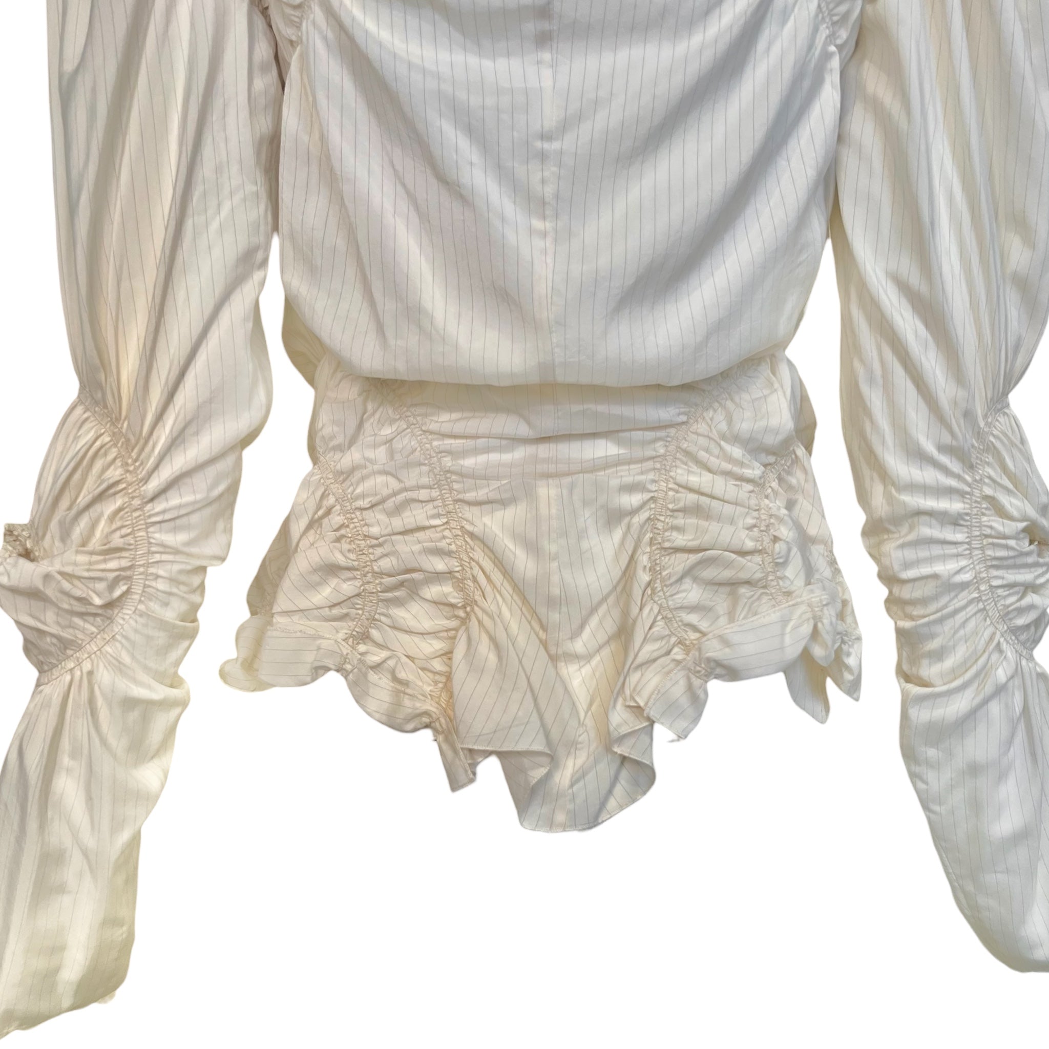 Jean Paul Gaultier Femme 2000's Cream Pin Striped Ruched Blouse