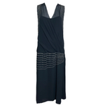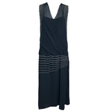 Robe mi-longue Art déco en mousseline noire des années 1920, ornée de strass cloutés à la main