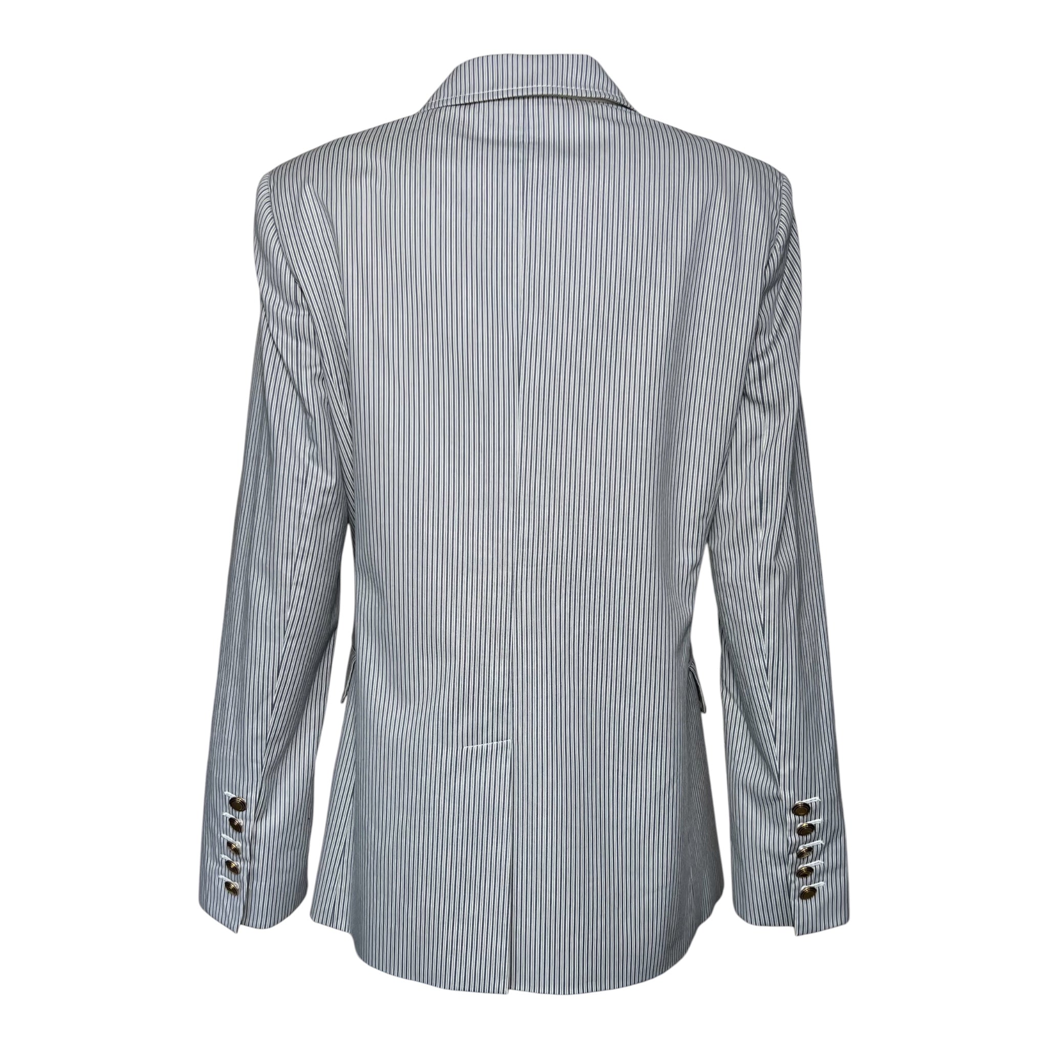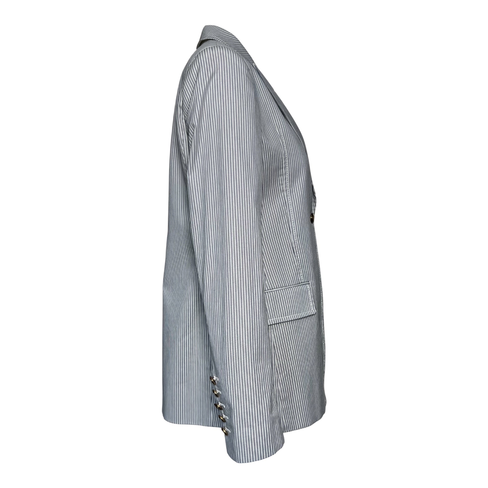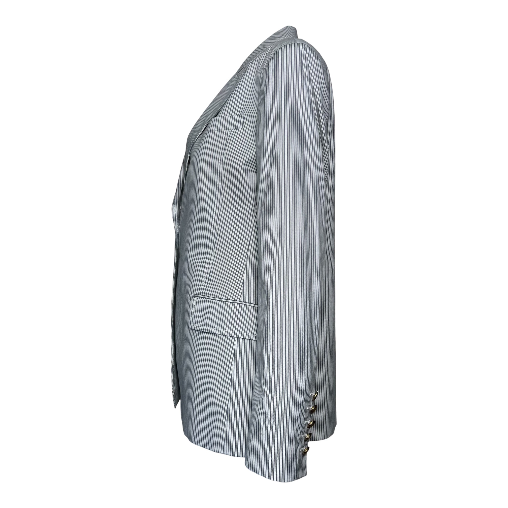 Gucci Cotton Blue Grey Pinstripe Single Button Blazer Jacket
