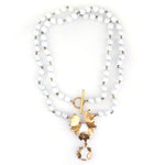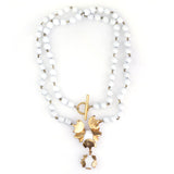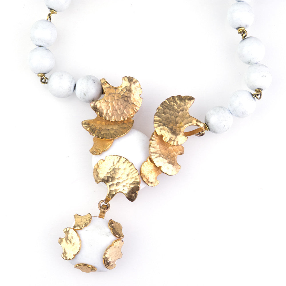 Collier AURIENTIS en perles blanches et bronze doré des années 1980
