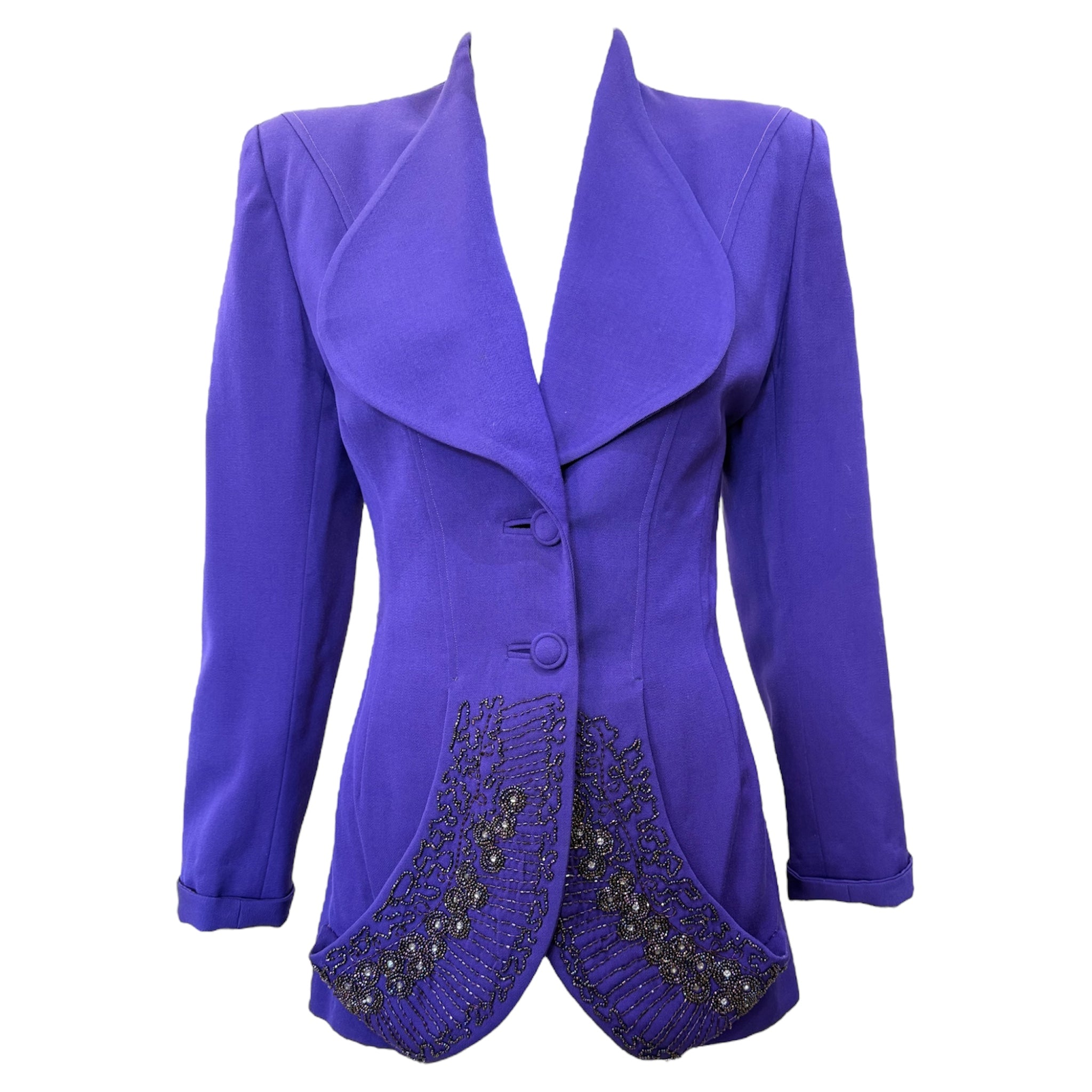 1940's Purple Gabardine Beaded Wide Lapel Blazer Jacket