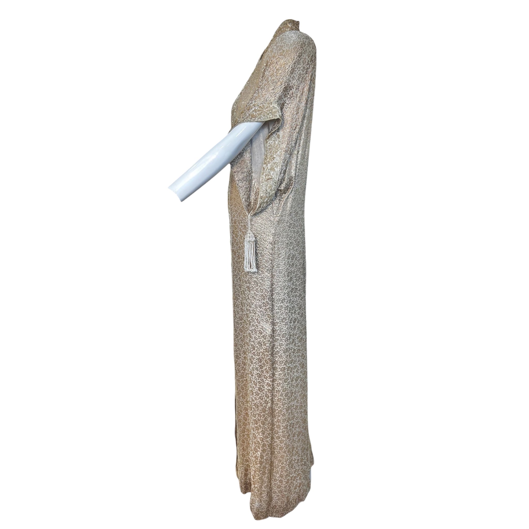 Late 1970's Gold Champagne Lamé Jacquard Caftan Gown and Scarf