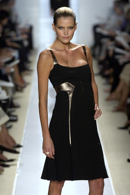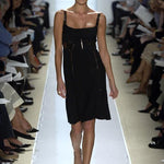 Chado Ralph Rucci S/S 2006 Black Wool Dress with Bronzed Leather Detail