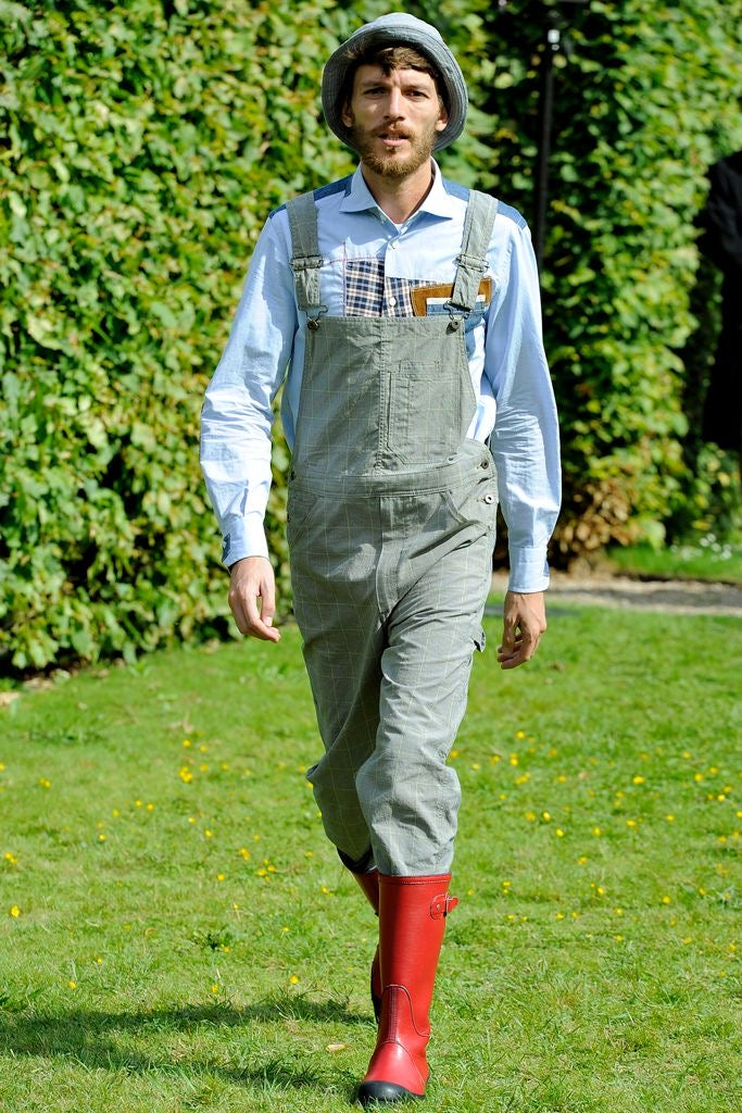 Preppy and scrappy like a good college boyfriend! Junya Watanabe for Comme des Garçons S/S 2012 Menswear patchwork button up as seen on the runway. We adore the runway styling of rain-boots and overalls with the perfectly manicured French garden. We we even love that they played George Harrison's masterpiece All Things Must Pass while models strolled down the grass runway! Composed of 100% cotton chambray with contrasting white collar and cuff. Scattered patches allover front that relax the buttoned-up look. Slim fit.