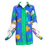 Castelbajac 1990's Silk Hand Painted Button Up Shirt