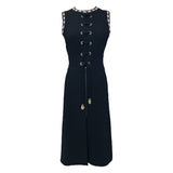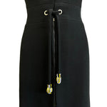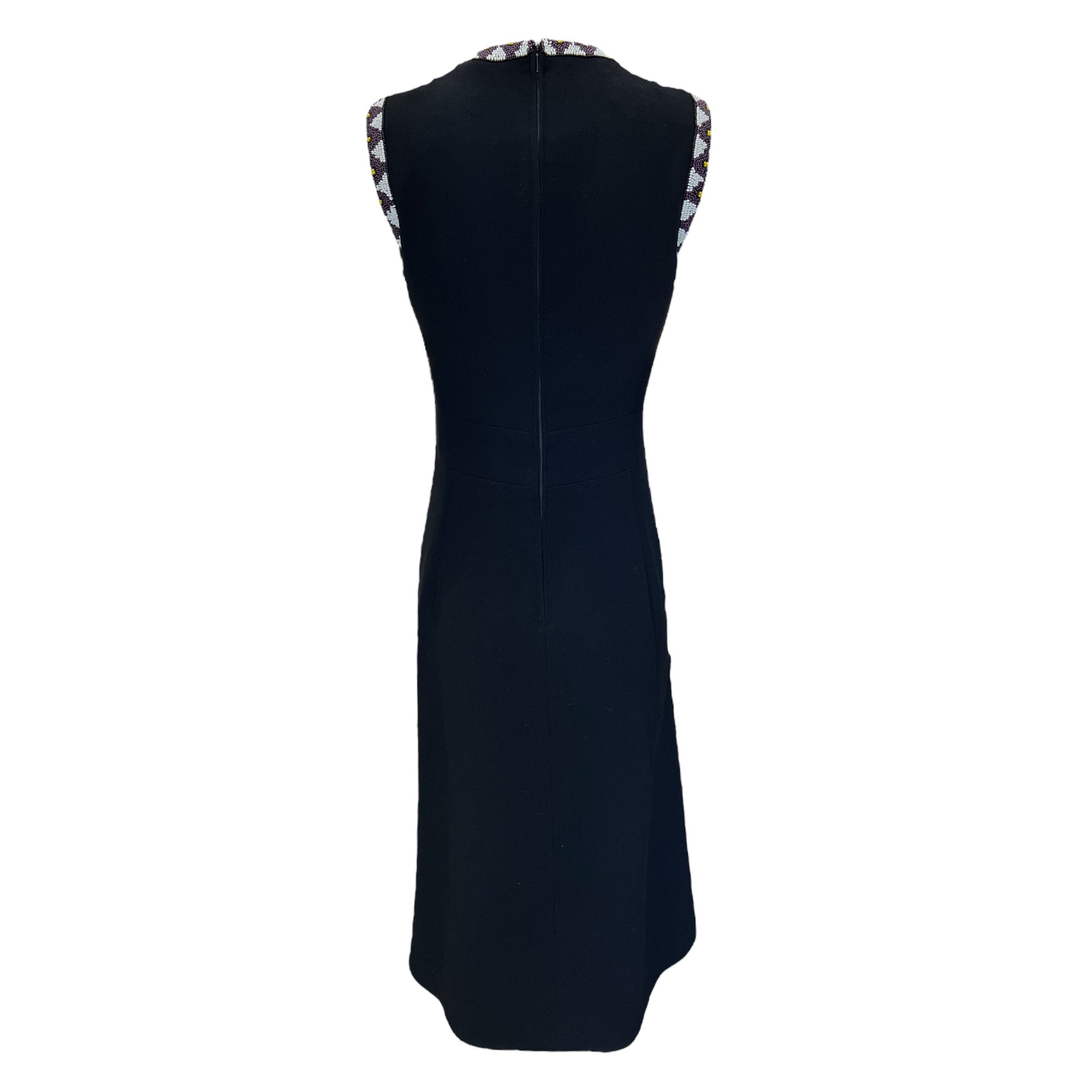 Louis Feraud 1970's Black Midi Lace Up Dress with Beaded Trim