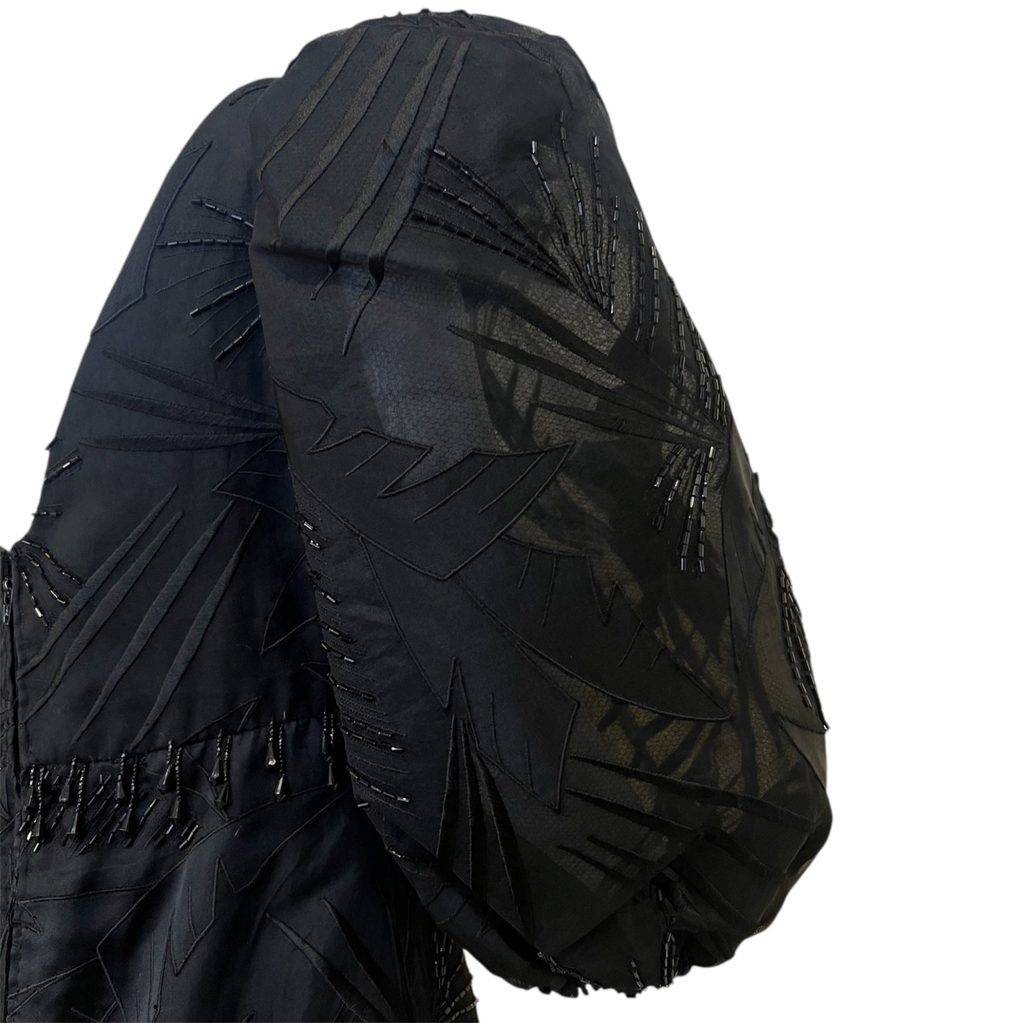 Ruben Panis 1980's Black Beaded Terno Puff Sleeve Gown