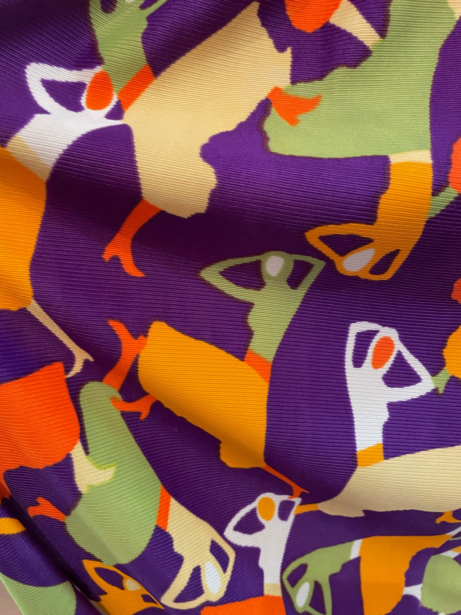 这个夏天,穿上 LESLIE 的这款 1970 年代复古长裙,展现你的最佳状态。这件裙子以鲜艳的紫色为主调,上面印着色彩缤纷、欢快的疯狂女郎图案。它仿佛在向你大声宣告,任何穿着或靠近它的人都会享受一段美好的时光。露背设计,后背交叉,搭配当下最流行的涤纶针织面料,是任何节日或场合的完美之选。